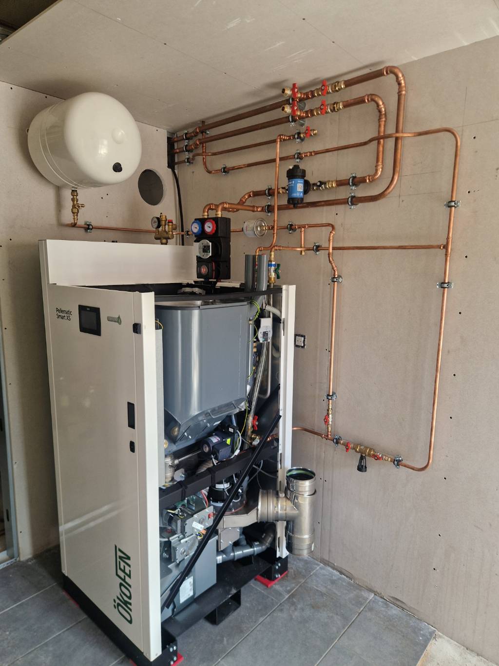 Installation d'une chaudière à granulés OKOFEN - Smart XS 12kw en remplacement d'une chaudière fioul - Maître Artisan RGE QualiBOIS.