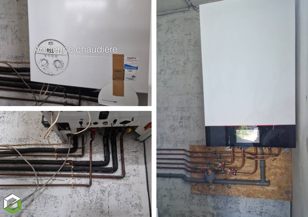 Remplacement chaudière gaz par une chaudière murale gaz à condensation Vitodens 222 W Viessmann, Maître Artisan RGE